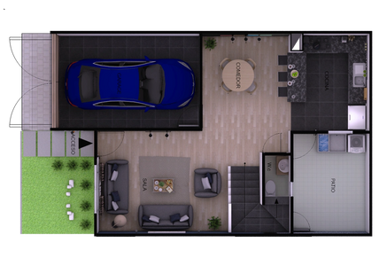 Sala comedor, cocina, baño social, patio de ropas, garaje interno, jardinera.